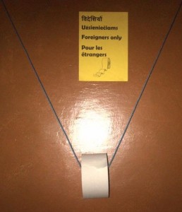 Patiko ne tik spektaklis, bet ir moterų tualeto puošybos subtilybės tema „Indija” 🙂 Gaivių smilkalų kvapas, žvakės, suoleliai su pagalvytėmis ir net tualetinis popierius 🙂 Keistai, bet linksmai sukurtas 50metų senumo tualeto estetinis vaizdas. Dar niekada nebuvo taip linksma tualete, kaip pas menininkus 🙂